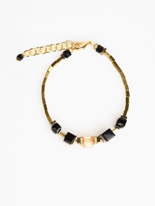 Агат, гематит, хрустальное стекло. Ювелирный сплав. Гальваническое покрытие: золото.