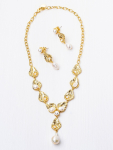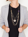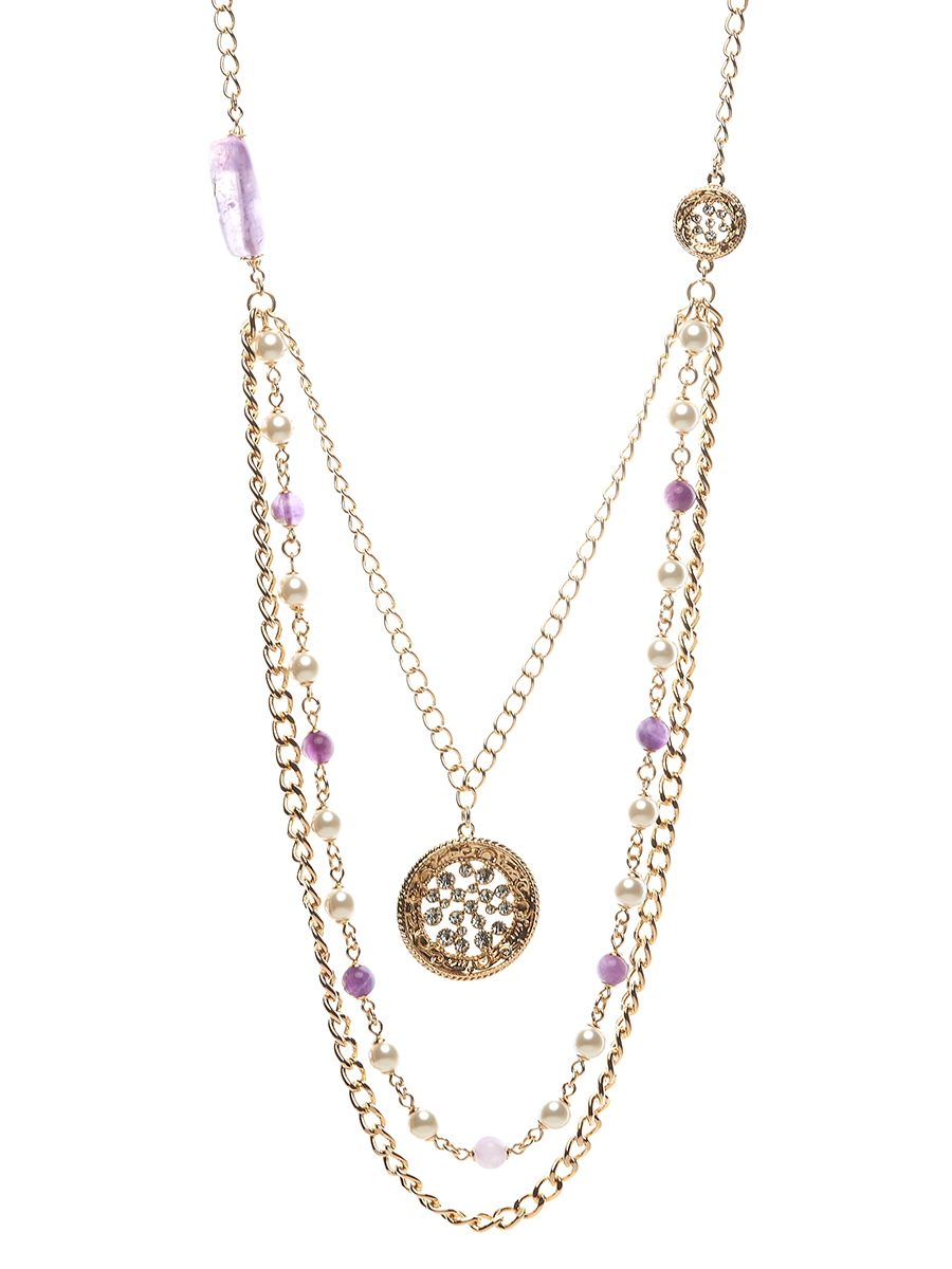Аметист, искусственный жемчуг, кристаллы Preciosa, латунь. Гальваническое покрытие: золото.