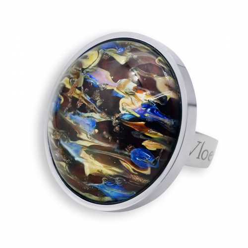 Кольцо изготовлено из муранского стекла и гипоаллергенной ювелирной стали, что очень важно для людей с чувствительной кожей. Металл не темнеет и не подвергается воздействиям окружающей среды, надолго обеспечивая красивый внешний вид изделия. Размер стеклянного элемента - 2х1,5 см. Кольцо безразмерное, регулируется с 16 до 19 размера. Вес - 7 гр.