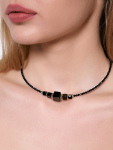 Оникс, хрусталь, кристаллы Preciosa, ювелирный сплав. Гальваническое покрытие: родий.