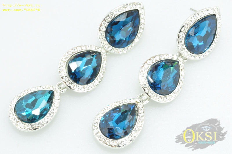 Великолепные длинные серьги с крупными роскошно- синими кристаллами, украшенными сверкающими зеркальными фианитами. Фото не отображает блеск и красоту украшения.Длина серьги 6,5 см. Качественное родиевое покрытие серебряного цвета.