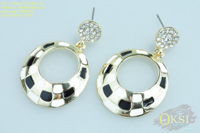Эффектное, всегда беспроигрышное сочетание базовых белого, чёрного и золотого цветов подходит к любому оттенку одежды и аксессуаров. Качественное гальваническое покрытие золотого цвета. Застёжка гвоздики.