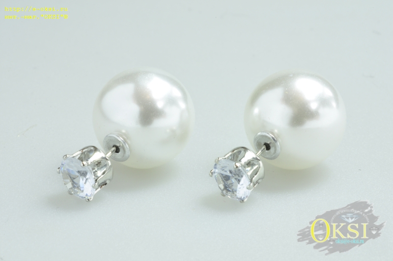 Стильные , жемчужные серьги - шарики с кристаллом.