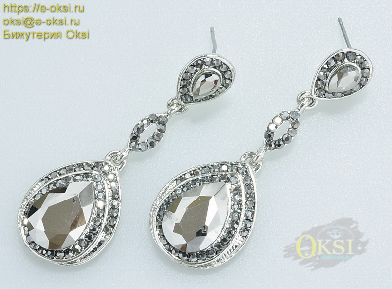 Эффектные, длинные серьги с крупным, сверкающим кристаллом серебристо-серого оттенка, с эффектным перламутровым блеском. Фото не передает блеск и красоту украшения. Качественное родиевое покрытие серебряного цвета. Длина серьги 5 см.