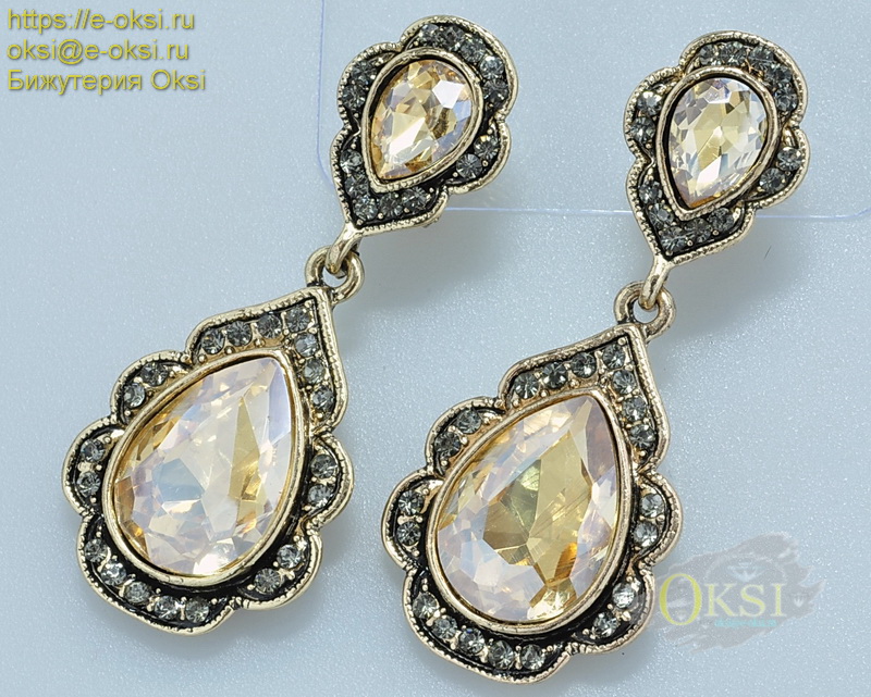 Эффектные серьги на удобной защёлкивающейся застёжке с крупными кристаллом янтарного оттенка , подходит к одежде любого цвета. Длина серьги 5 см., ширина 2 см. Качественное родиевое покрытие золотого цвета.