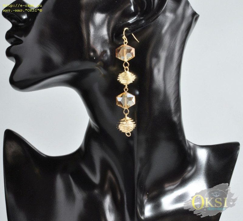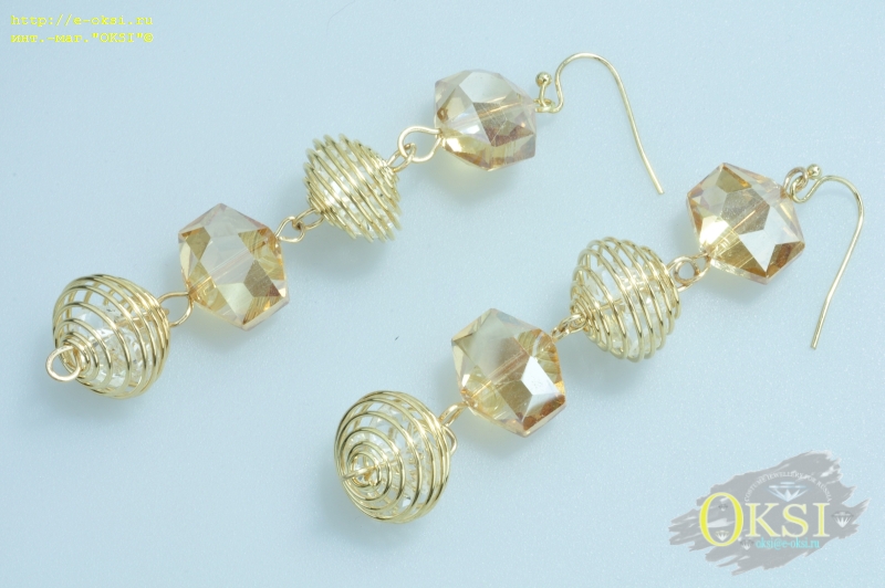 Очаровательные, длинные серьги ( ручная работа) из чешского хрусталя янтарного оттенка и металлическими пружинками, сквозь которую поблескивают сверкающие кристаллы, находящиеся внутри . Идеально подходит к колье 31100015.