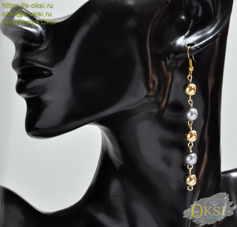 Стильные, длинные серьги с жемчугом . Серьги идеально подойдут под колье 30031730, и декоративный пояс - ремень 30050083. Качественное гальваническое покрытие золотого цвета. Длина серьги вместе с застежкой 8 см.