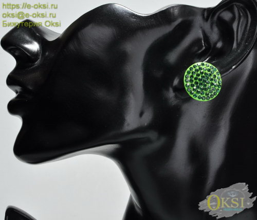 Яркие серьги инкрустированы сверкающими кристаллами изумрудно - зеленого оттенка. Зеленого много не бывает. Особенно, если его оттенки удачно подобраны и идеально сочетаются. Акцентировать внимание на зеленом можно с помощью нейтрального фона. Лучший контраст создает белый и черный цвет. Очень красивые сочетания с желтым и оранжевым, а также золотым и серебряным цветом.