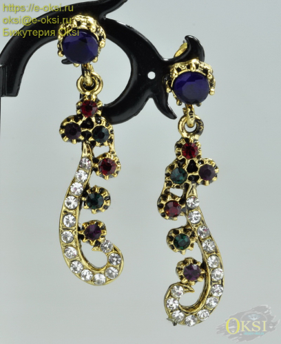 Стильные серьги с роскошно - синими кристаллами. Идеально подходят под колье 30031694. Качественное родиевое покрытие серебряного цвета. Длина серьги 3,3 см.