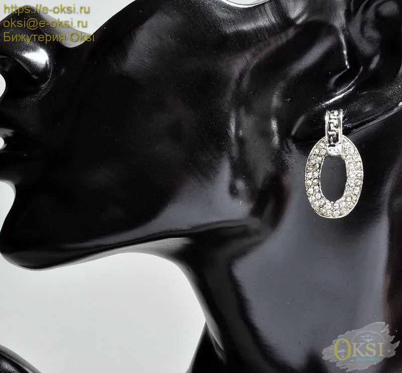 Стильные серьги с греческим рисунком, инкрустированы сверкающими кристаллами. Качественное родиевое покрытие серебряного цвета.