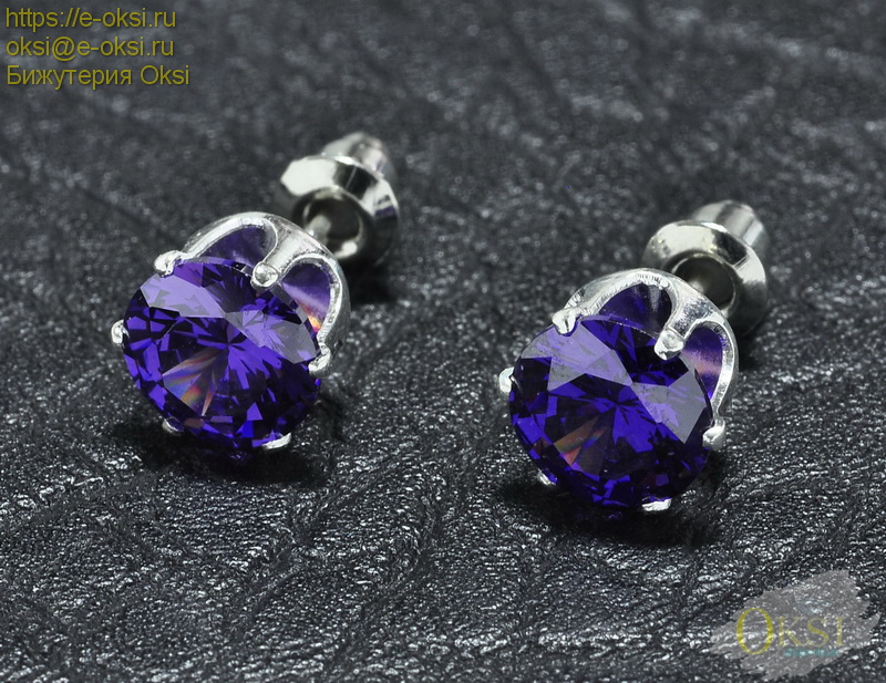Серьги гвоздики. Диаметр кристалла 5 - 7 мм, сиреневого оттенка.
