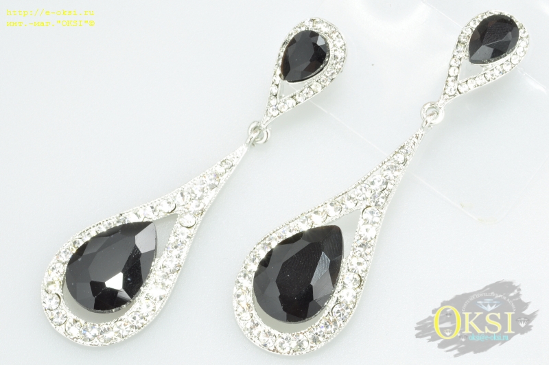 Элегантные, длинные серьги с крупным черным кристаллом, украшенным сверкающими фианитами. Фото не отображает блеск и красоту украшения.Длина серьги 7 см. Качественное родиевое покрытие черного цвета. Черный цвет – цвет ночи и классики, утонченности и таинственности , мистики и магии. Этот цвет крайне неоднозначен, но он всегда в моде, и зимой и летом - он всегда на пике популярности.Черный цвет в украшениях является базовым и подходит практически к любому цвету одежды или аксессуаров.
