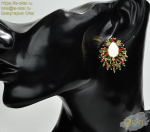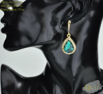 Роскошные, очень красивые позолоченные серьги в форме цветка с крупным кристаллом , украшены сверкающими фианитами. Английский замок. Размер серьги 2 см х 1.2 см.