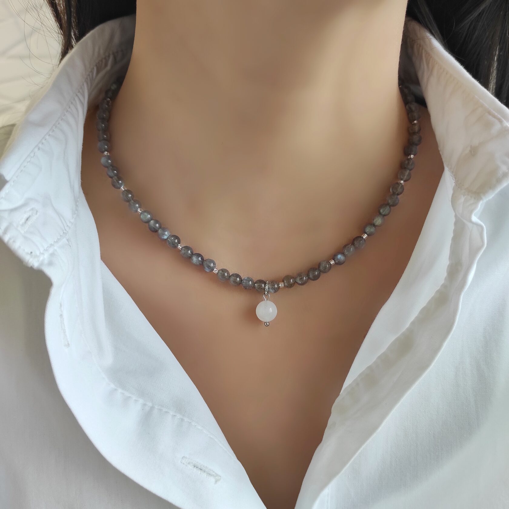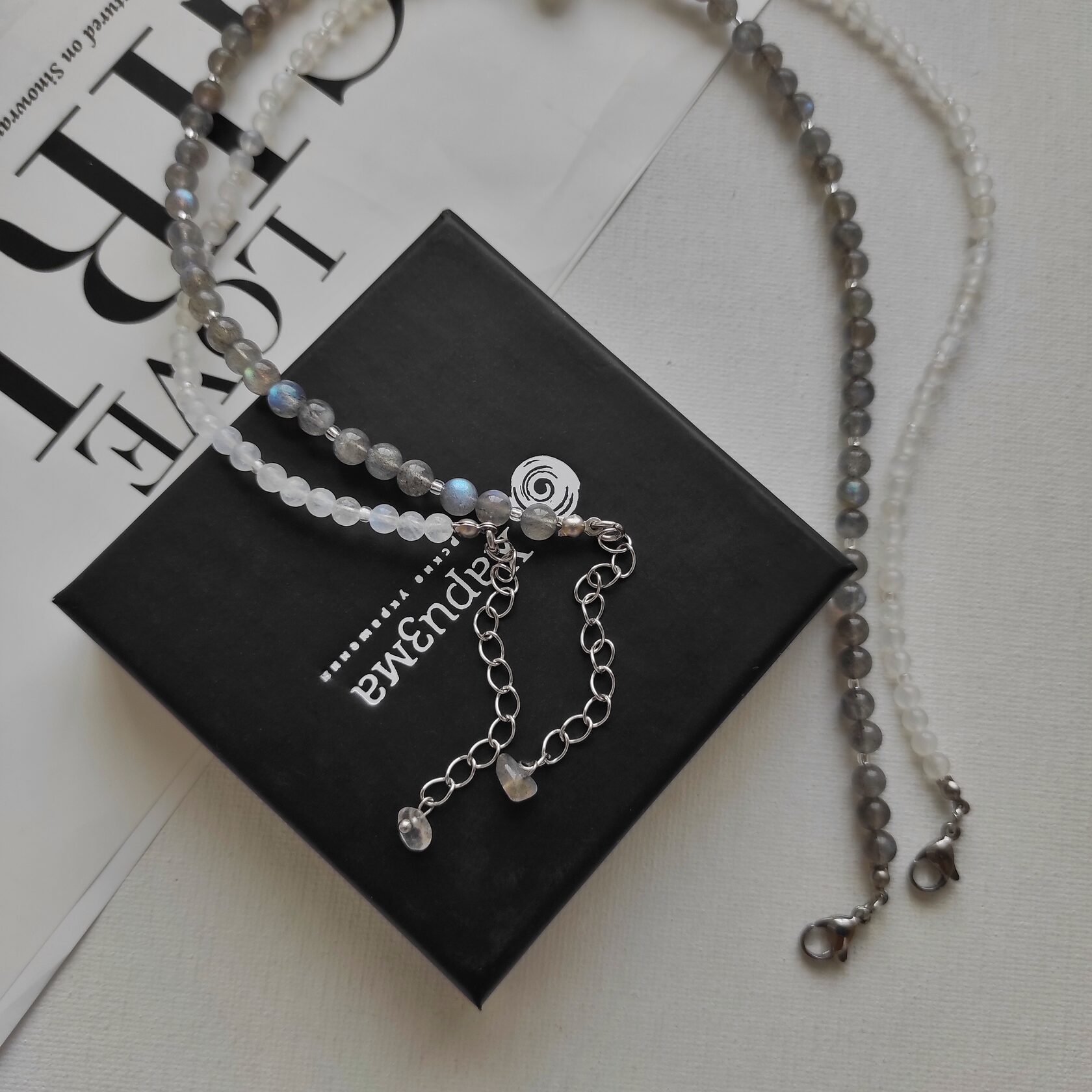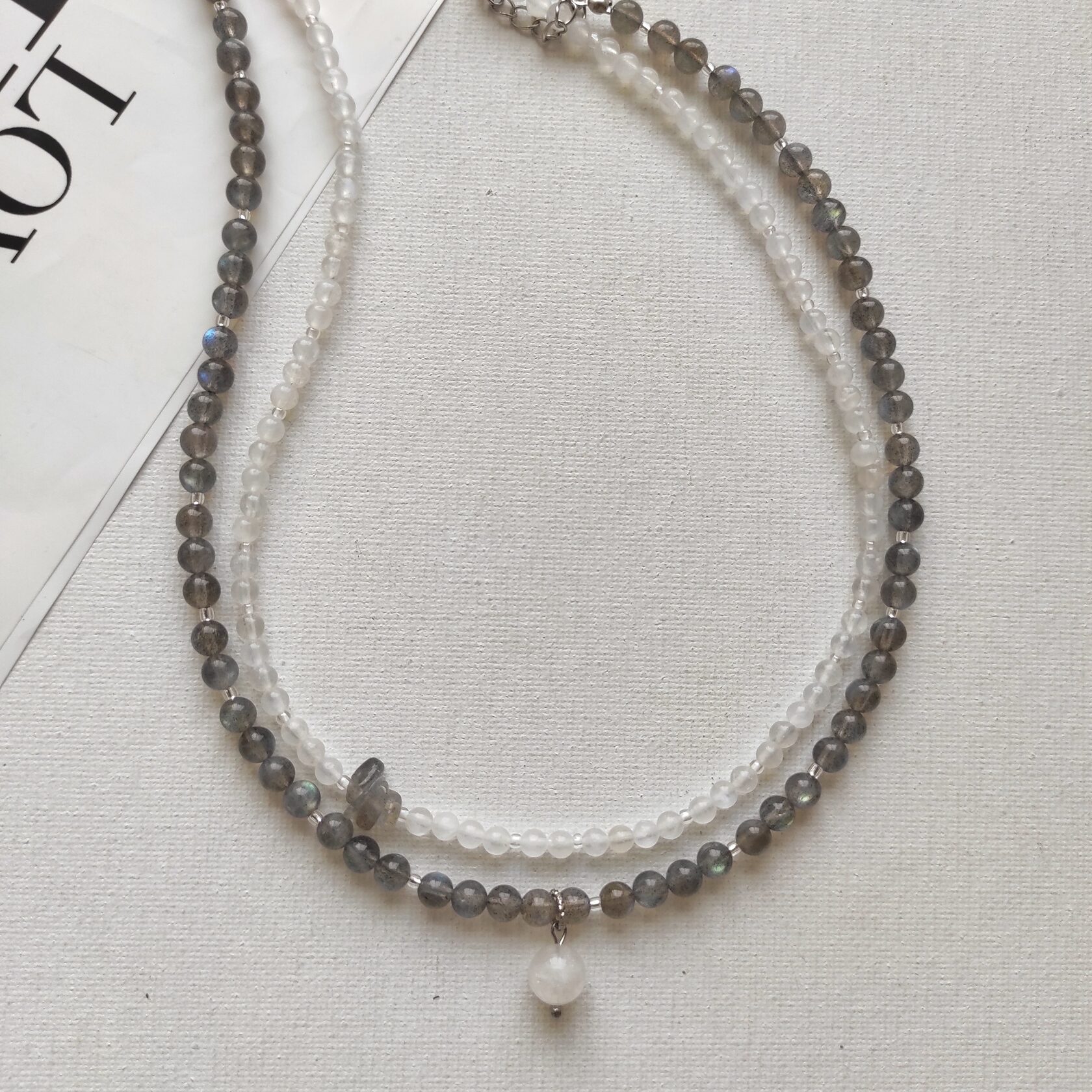 Сет из 2х чокеров: лабрадор и лунный камень