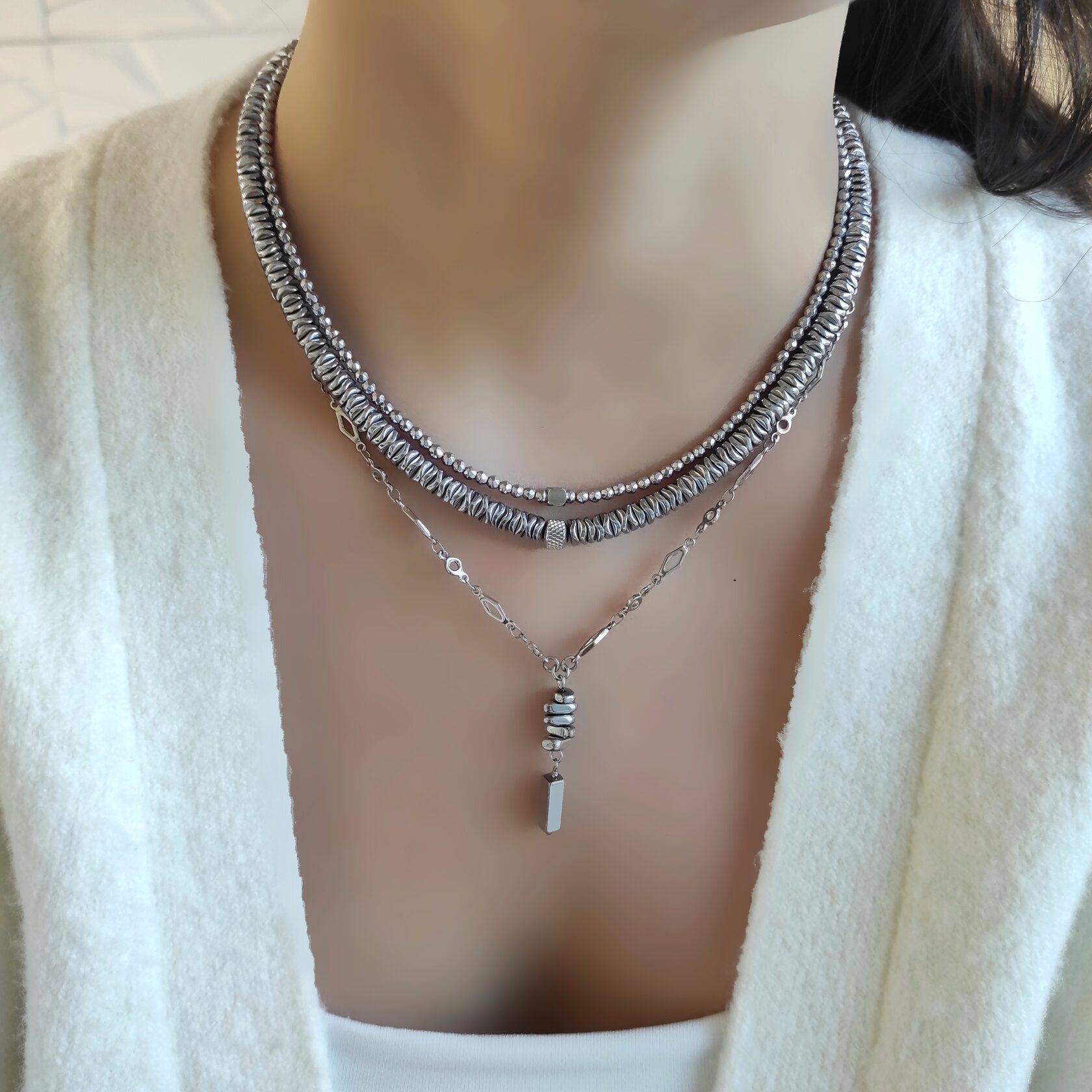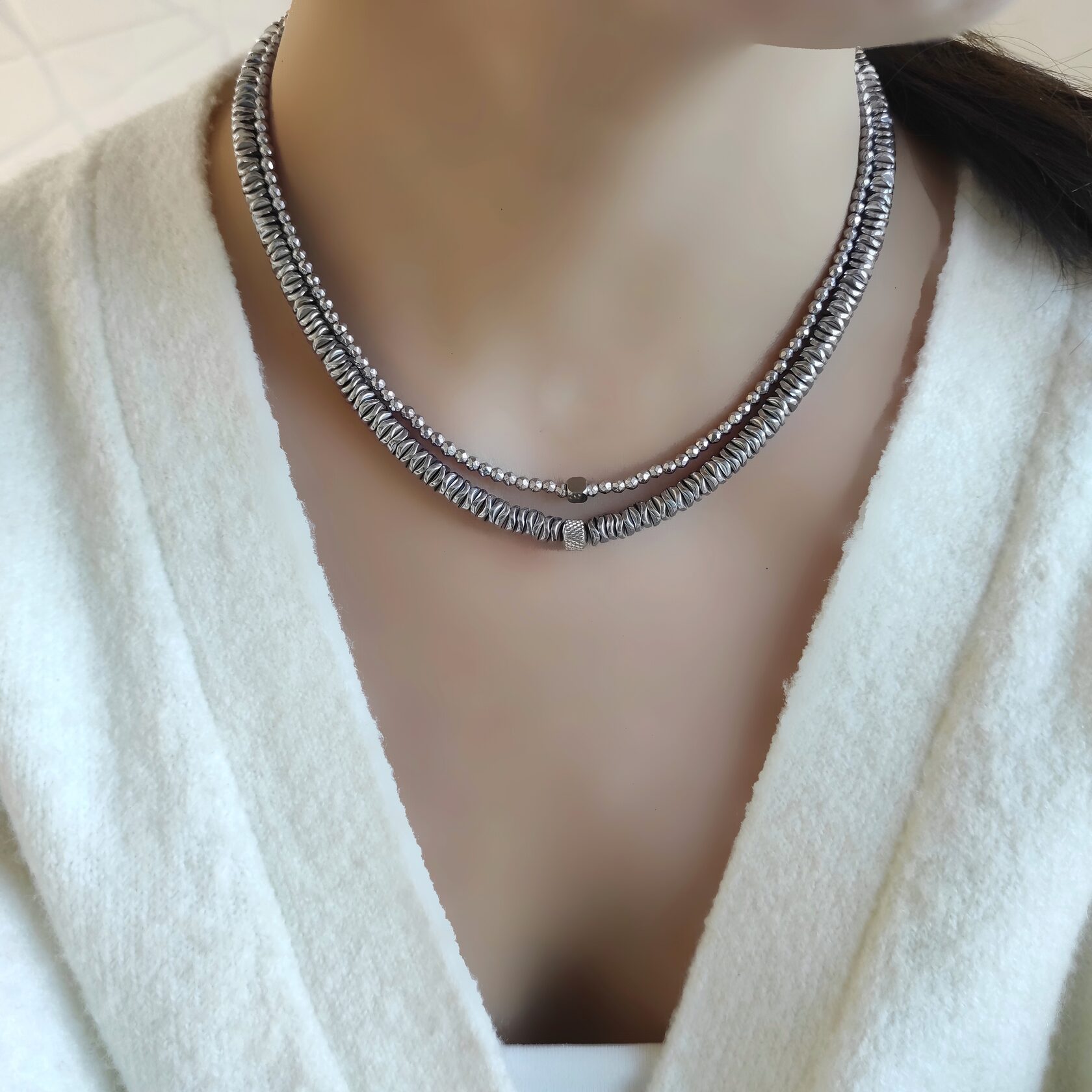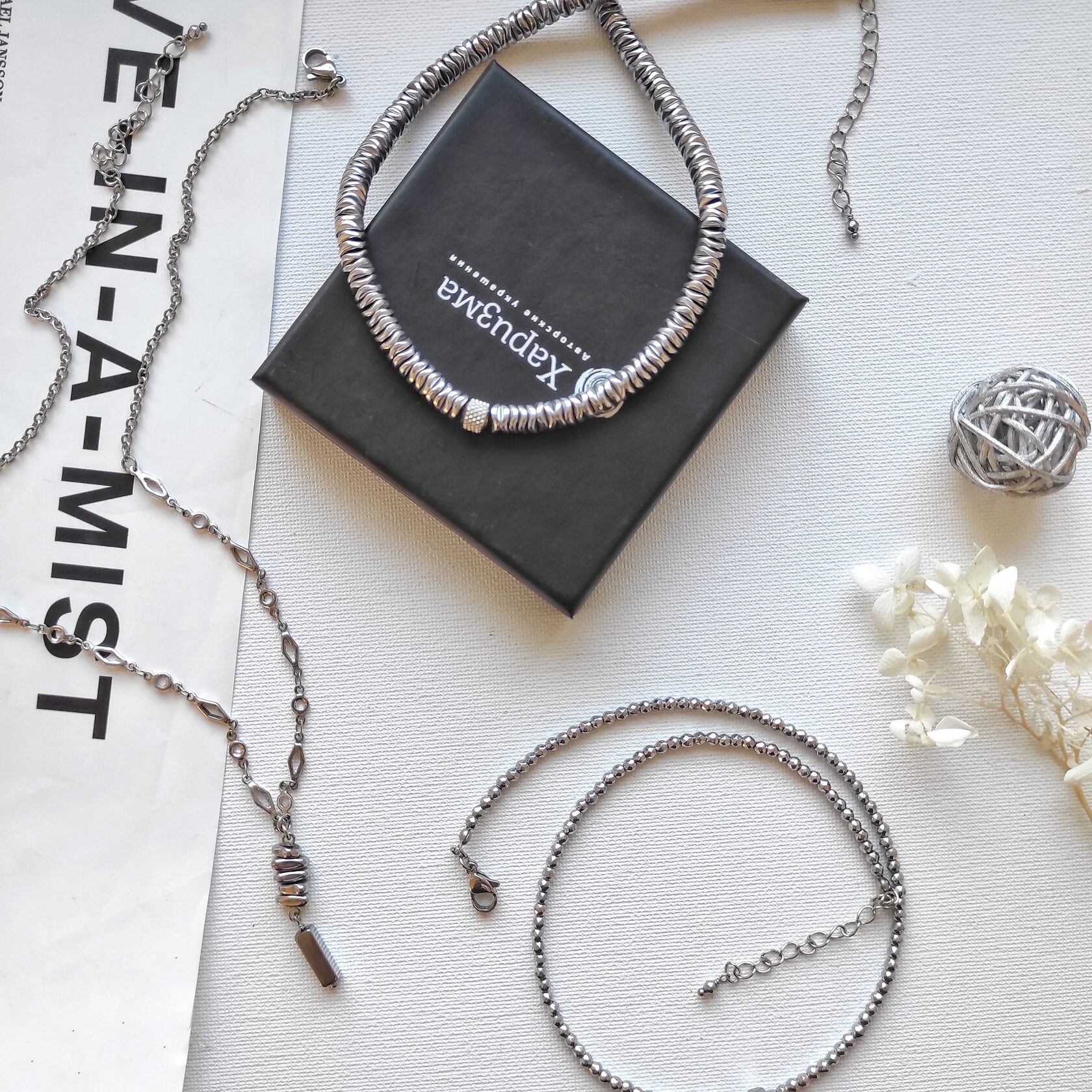 Сет из гематита серебристого цвета: два чокера и цепочка
