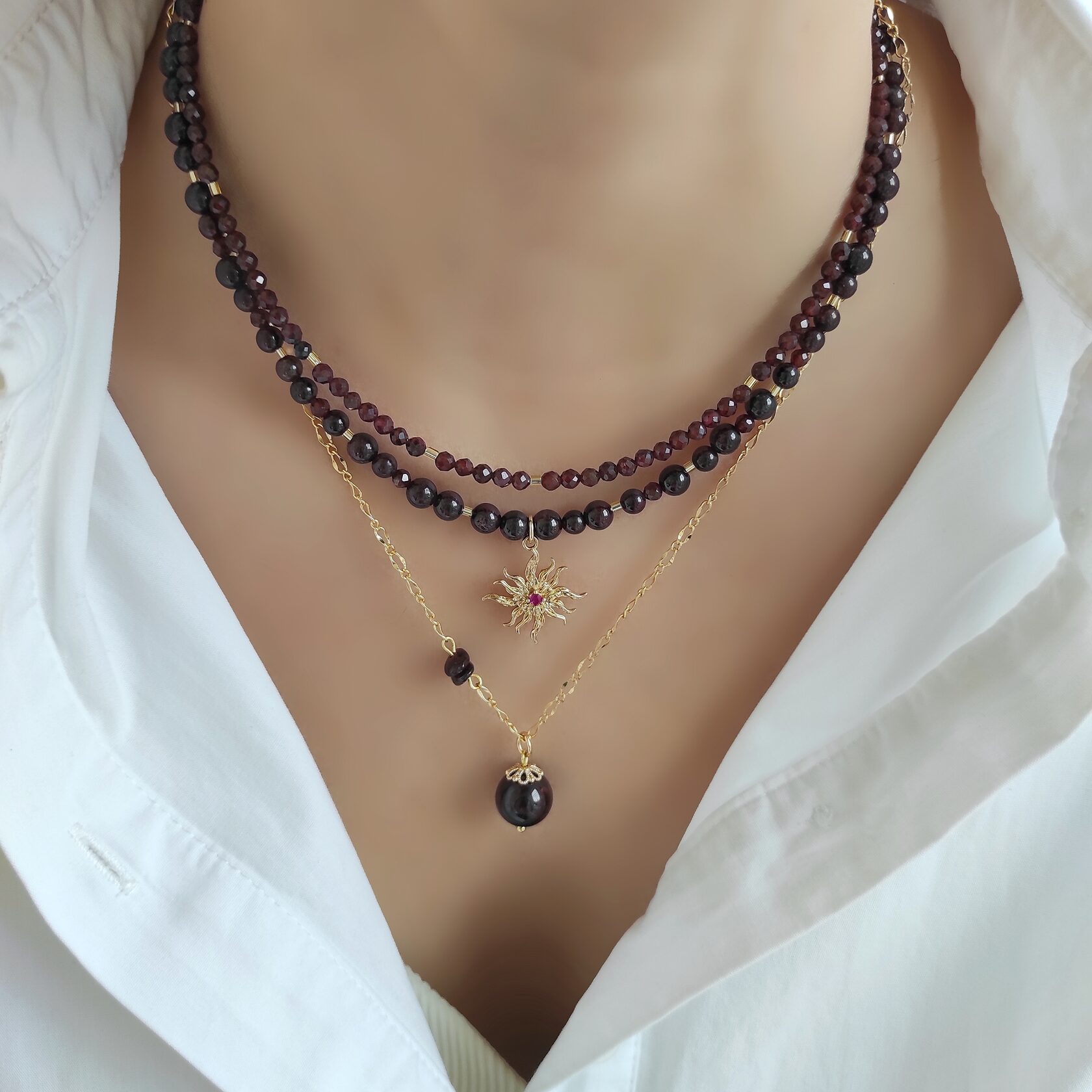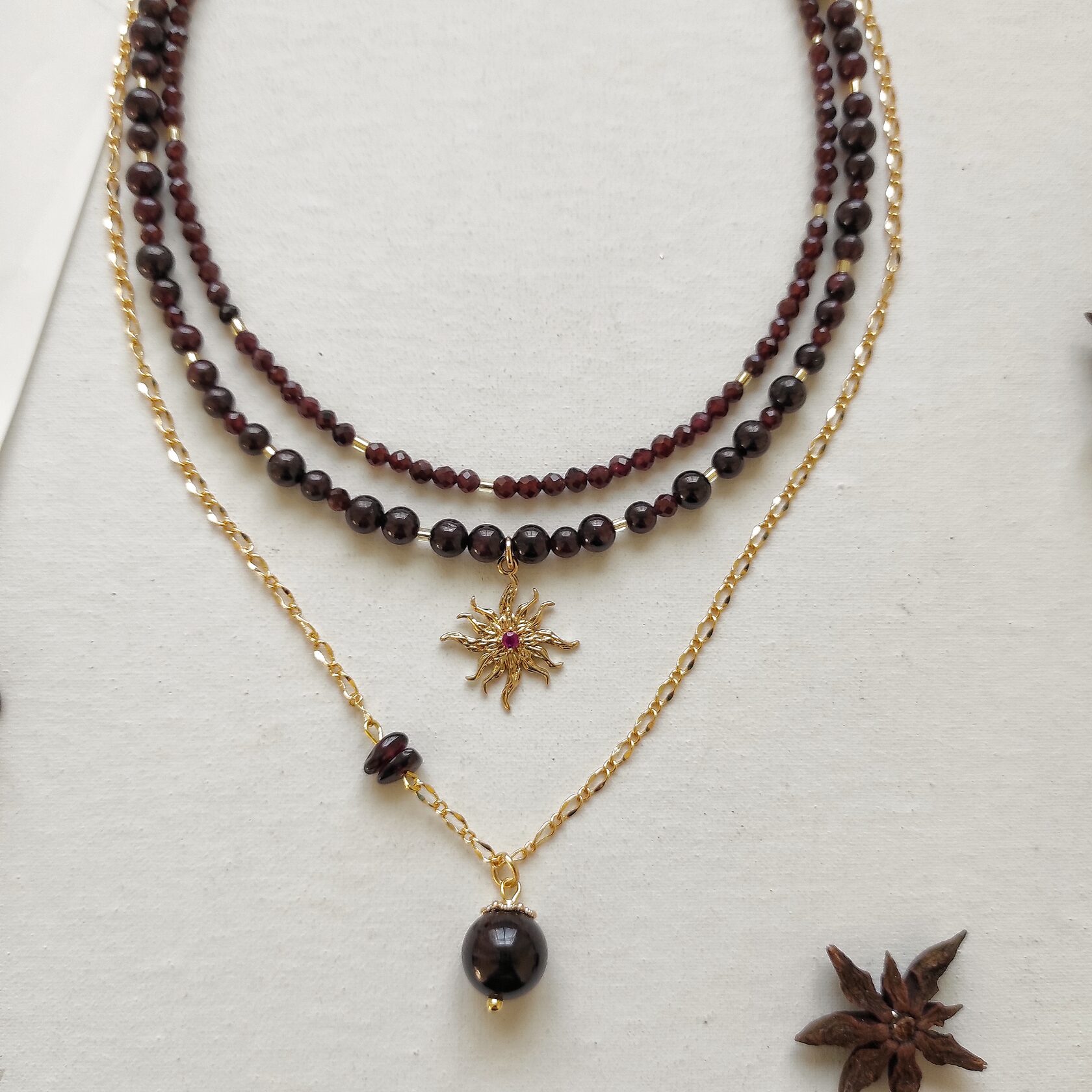 Сет из натурального граната в позолоченной фурнитуре