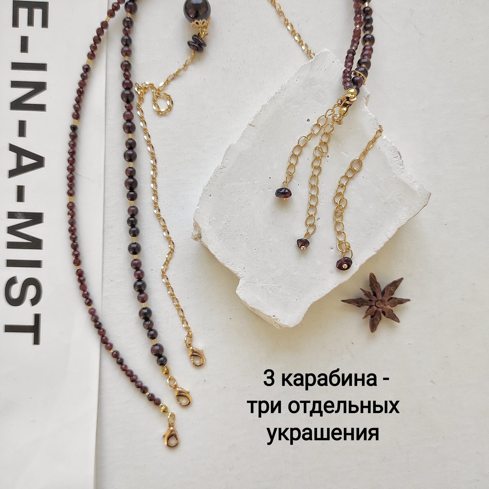 Три украшения: 2 чокера и цепочка с кулоном - можно носить вместе или по отдельности.