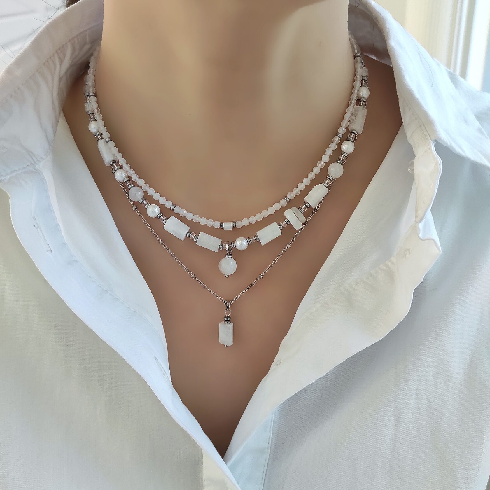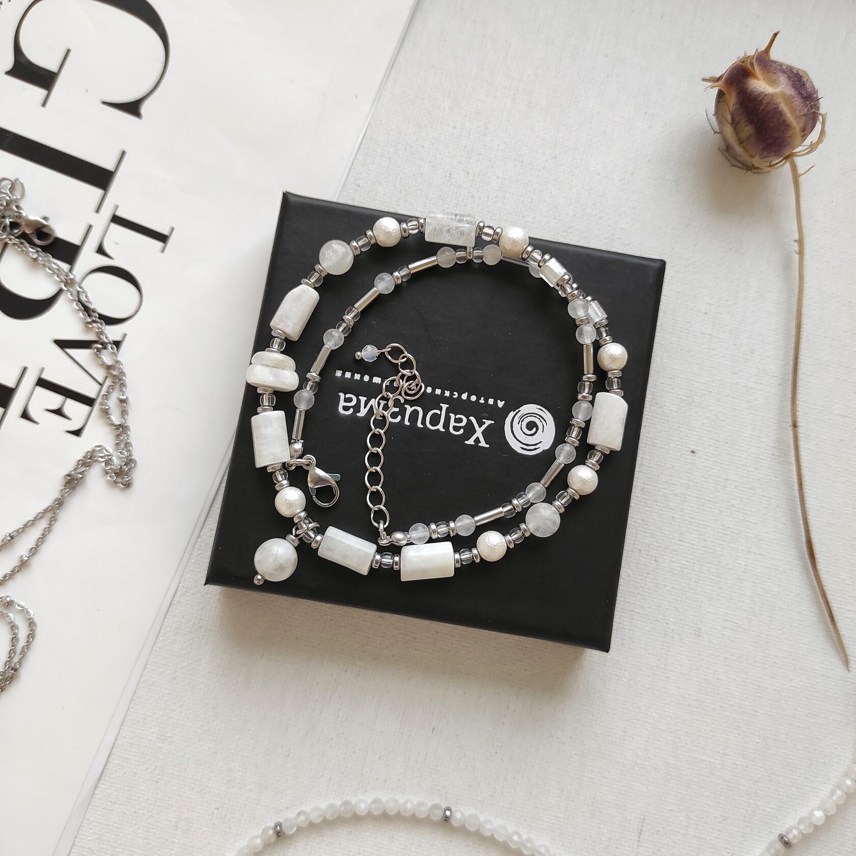 Натуральные камни: лунный камень, хлопковый жемчуг