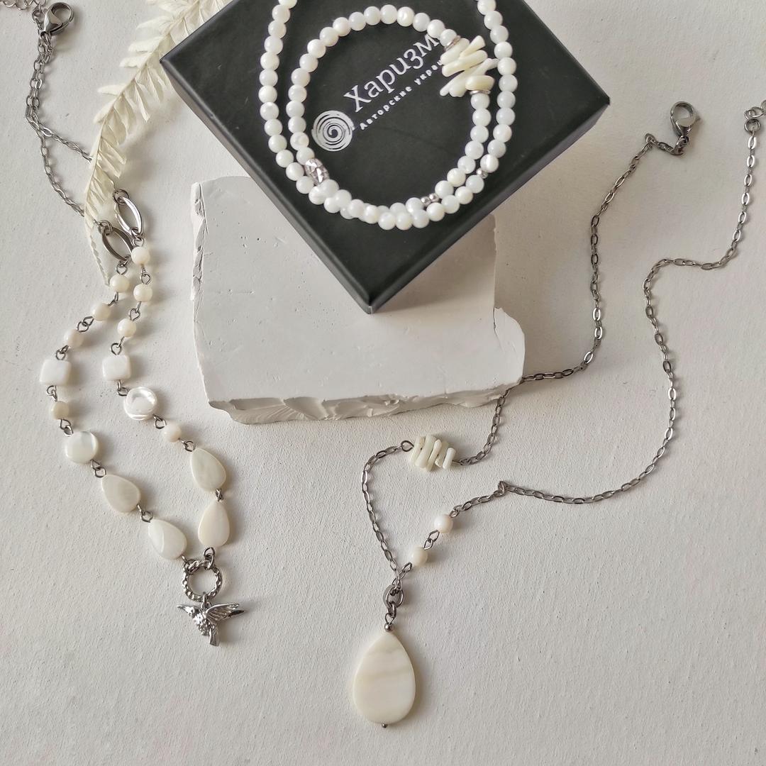 3 украшения: два чокера и цепочка. Можно носить вместе или раздельно.