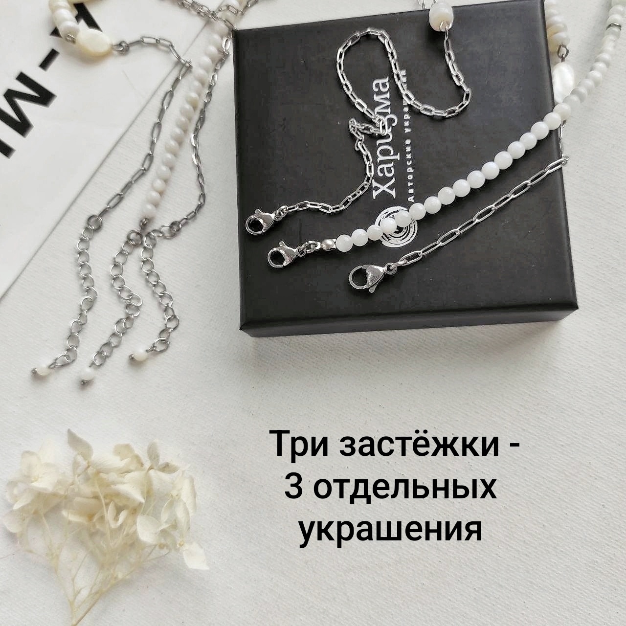 3 украшения: два чокера и цепочка. Можно носить вместе или раздельно.