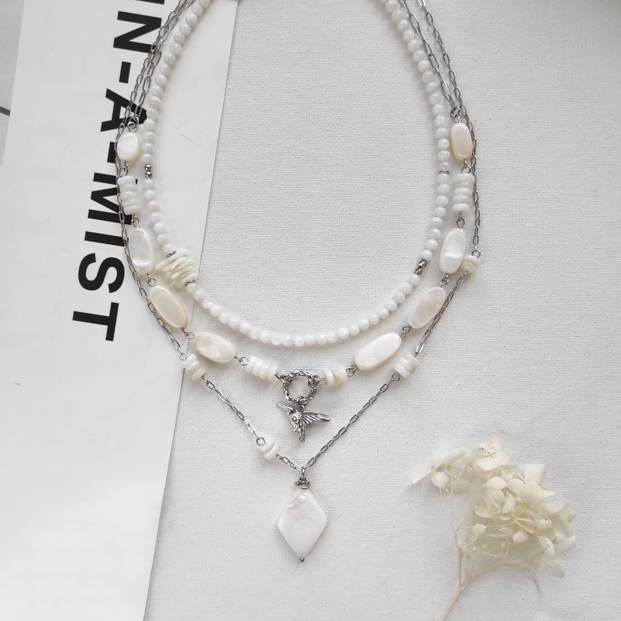 Верхний чокер длиной ~40см + цепочка для удлиннения. Чокер с птичкой Колибри - 43см + цепочка для удлиннения 5см.