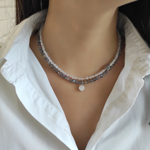 •Нижняя цепочка: длина 50см + цепочка для удлиннения. Кулона из камня родонит ввиде сердца