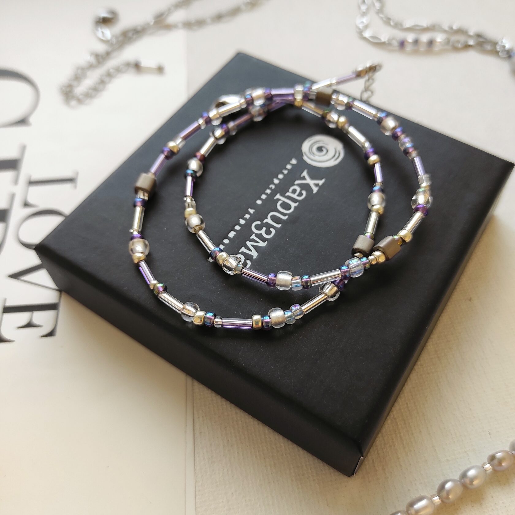 •Верхний чокер: длина 40см + 5 см цепочка для удлиннения. Бисер премиум класса ТОНО