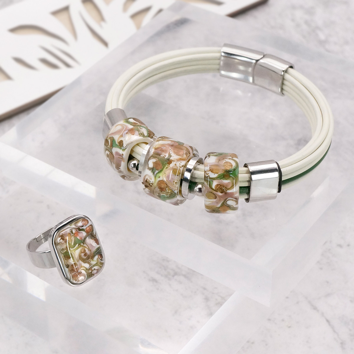РОЗНИЧНАЯ ЦЕНА 3890руб. Summer - по-летнему яркая и легкая коллекция эксклюзивной бижутерии ручной работы. Бусины из муранского стекла впечатляют глубиной и выразительностью узоров, образованных сочетанием оттенков зеленого, розового и белого с вкраплениями перламутрового блеска золота и меди.