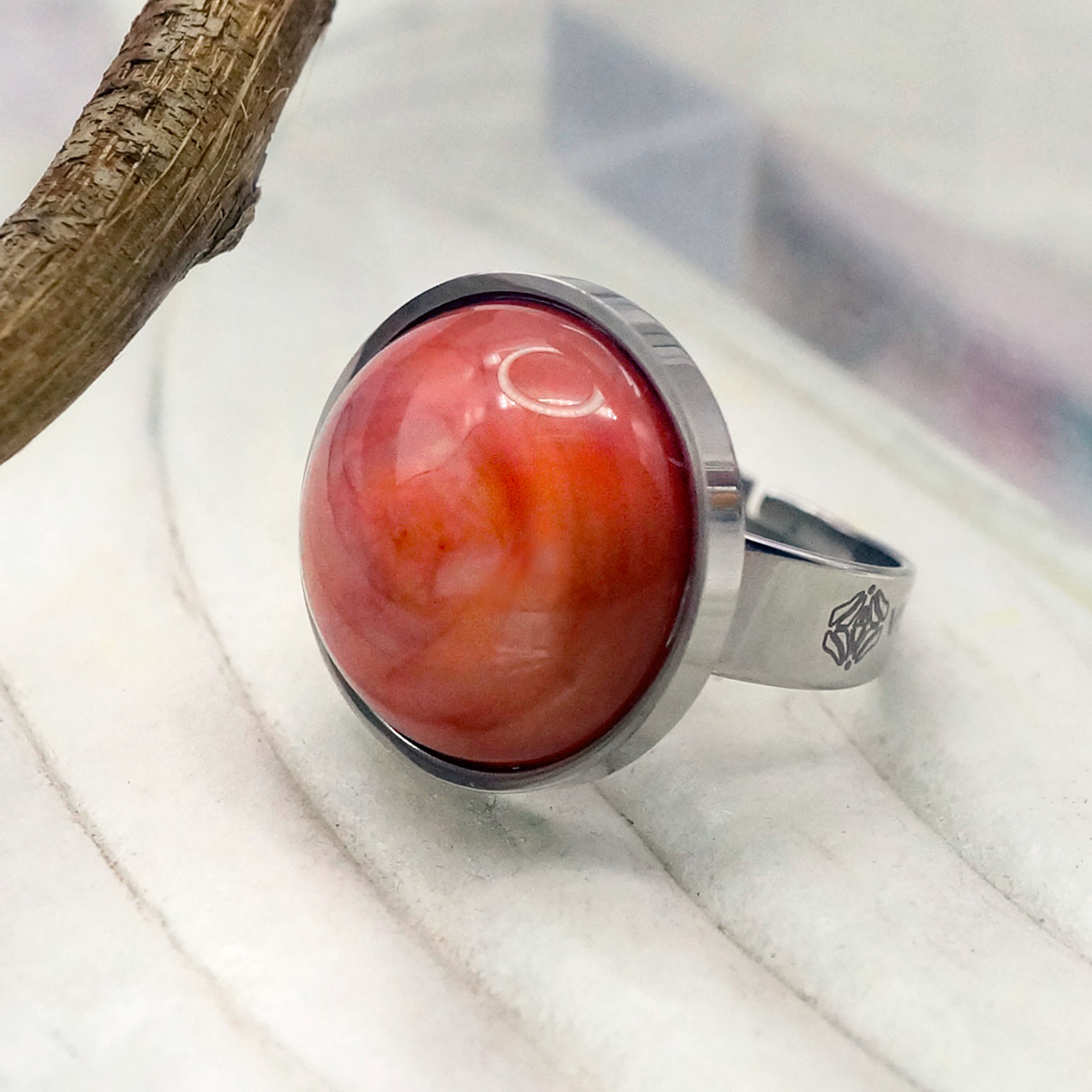 Кольцо изготовлено из муранского стекла и гипоаллергенной ювелирной стали, что очень важно для людей с чувствительной кожей. Металл не темнеет и не подвергается воздействиям окружающей среды, надолго обеспечивая красивый внешний вид изделия. Диаметр стеклянного элемента - 2 см. Кольцо безразмерное, регулируется с 16 до 19 размера. Вес - 8 гр.