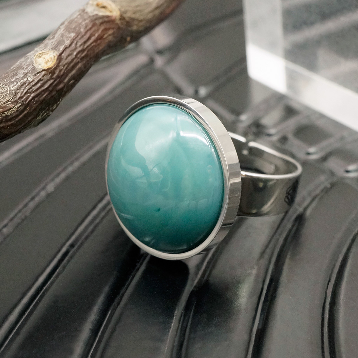 Кольцо изготовлено из муранского стекла и гипоаллергенной ювелирной стали, что очень важно для людей с чувствительной кожей. Металл не темнеет и не подвергается воздействиям окружающей среды, надолго обеспечивая красивый внешний вид изделия. Диаметр стеклянного элемента - 2 см. Кольцо безразмерное, регулируется с 16 до 19 размера. Вес - 8 гр.