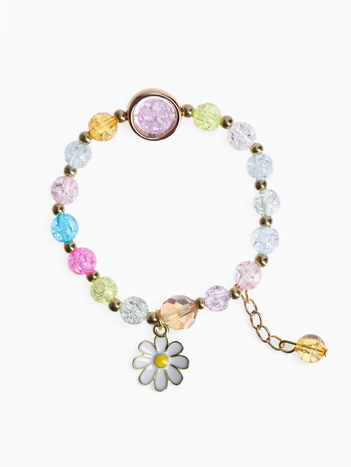 [Картинка122]Детский браслет с цветочным мотивом и золотистыми элементами станет ярким дополнением к образу девочки. Изделие выполнено из металла и пластика с эмалевыми вставками, что придаёт аксессуару лёгкость и прочность. Диаметр 7 см адаптирован под детское запястье, а отсутствие застёжки обеспечивает удобство надевания.
