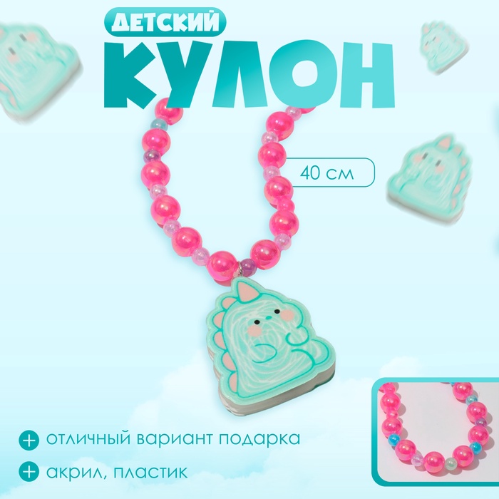 Основа кулона — бусины длиной 40 см, которые аккуратно ложатся на шею, создавая удобство и лёгкость. Такой комплект станет универсальным украшением для повседневных и праздничных образов, добавляя яркий акцент и подчеркивая индивидуальность маленькой модницы.