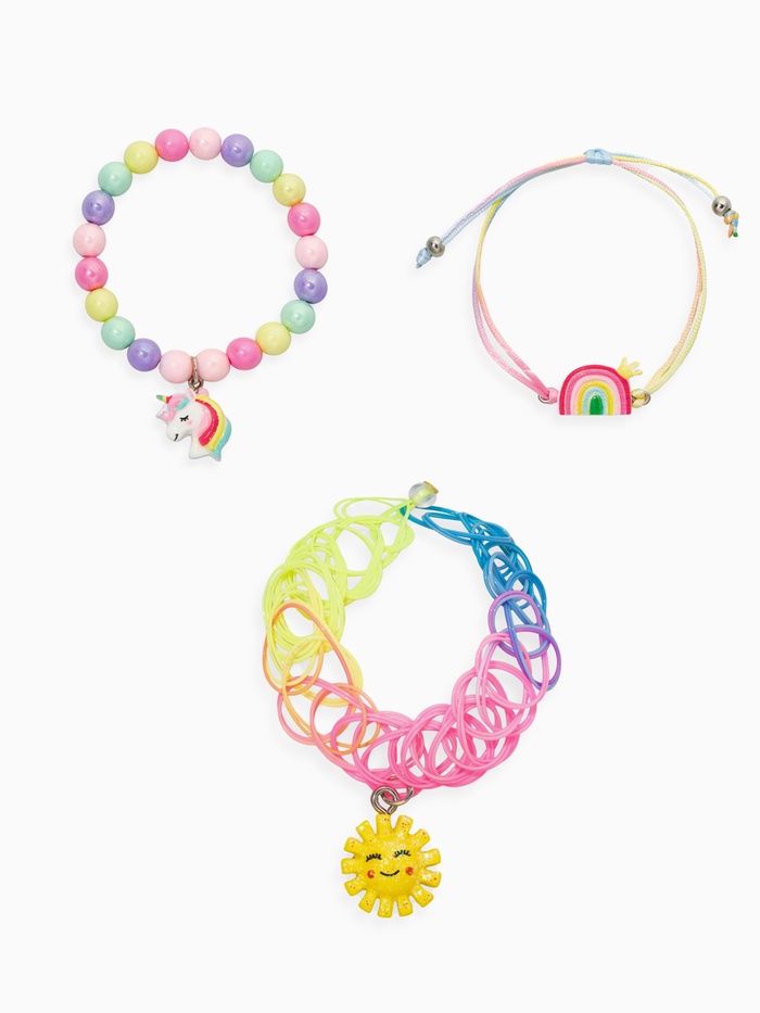 * Разноцветный дизайн: В набор входят браслеты с рисунками и изображениями животных. Мягкие цвета и разнообразие оттенков помогают комбинировать украшения с различными луками.