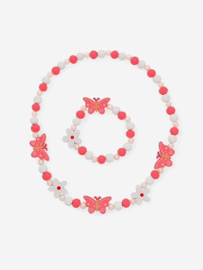 [Картинка122]Яркий и весёлый набор из двух украшений — бусы и браслет — создан специально для маленьких модниц, которые любят играть с цветом и фантазией. В основе набора — сочетание натурального дерева и лёгкого пластика, украшенное красочными бабочками и цветами, что придаёт аксессуарам неповторимый шарм и лёгкость.