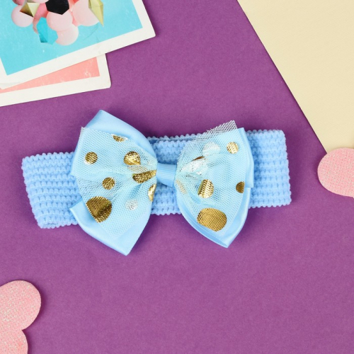 Повязка для волос «Выбражулька», бантик горох блеск, 16×3 см, голубая