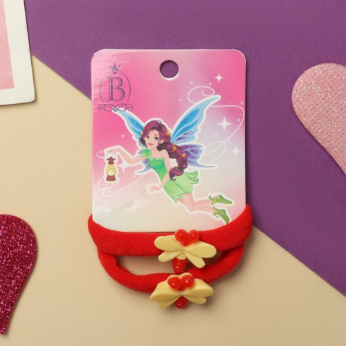 Резинки для волос «Фея», набор 2 шт., стрекоза, 4 см, красные