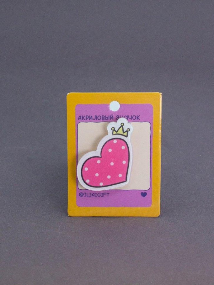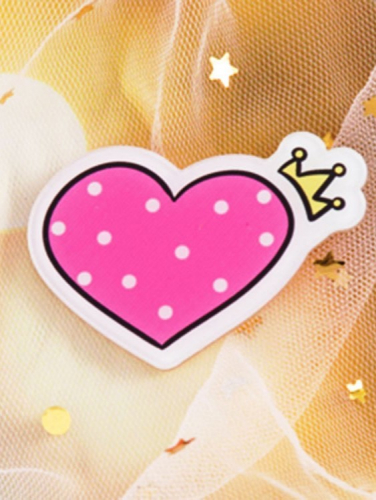 Розовое сердечко в горошек с миниатюрной короной — идеальный значок для настоящей принцессы. Милый и игривый, он поднимает настроение и прекрасно дополняет повседневные образы. Легко крепится и мгновенно делает любую вещь чуть более волшебной. Размер значка: 3 x 4,6 x 0,6 см
