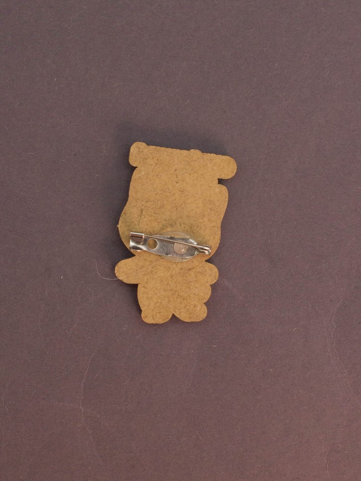Значок выполнен из дерева с нанесением принта. На тыльной стороне застёжка в виде английской булавки. Каждый значок размещен на подложке и упакован в полиэтиленовый пакет с европодвесом.