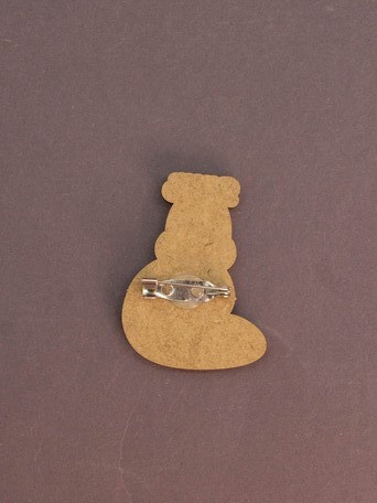 Значок выполнен из дерева с нанесением принта. На тыльной стороне застёжка в виде английской булавки. Каждый значок размещен на подложке и упакован в полиэтиленовый пакет с европодвесом.