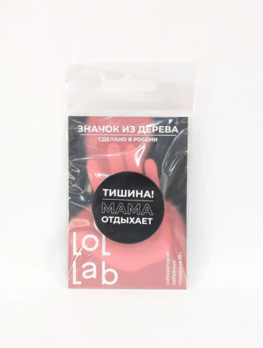 Значок ECO из дерева LOL LAB "Тишина! Мама отдыхает!"