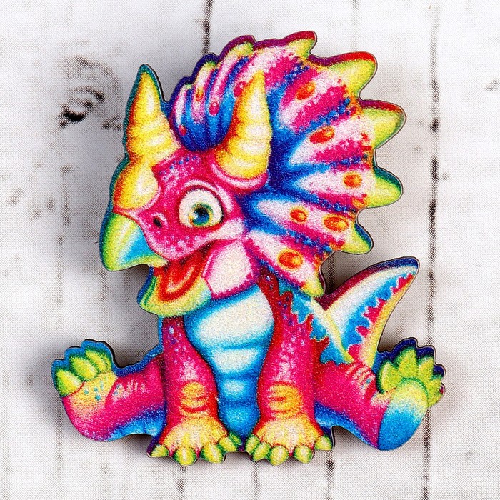 Деревянный значок «Трицератопс» станет универсальным аксессуаром для повседневного образа. Этот экологичный аксессуар из натурального дерева с ярким дизайном подойдёт как детям, так и взрослым. Его можно закрепить на сумке, рюкзаке, одежде или головном уборе, добавив индивидуальности вашему стилю.