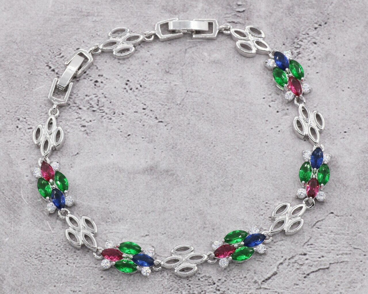 Браслет с цирконами из ювелирного сплава — стильное и яркое украшение, дополняющее любой образ.