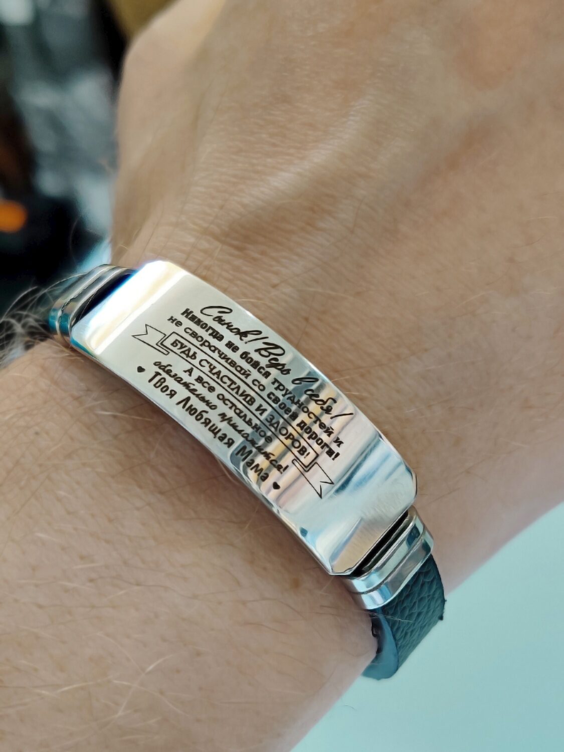 Стальной браслет на ремешке с гравировкой
