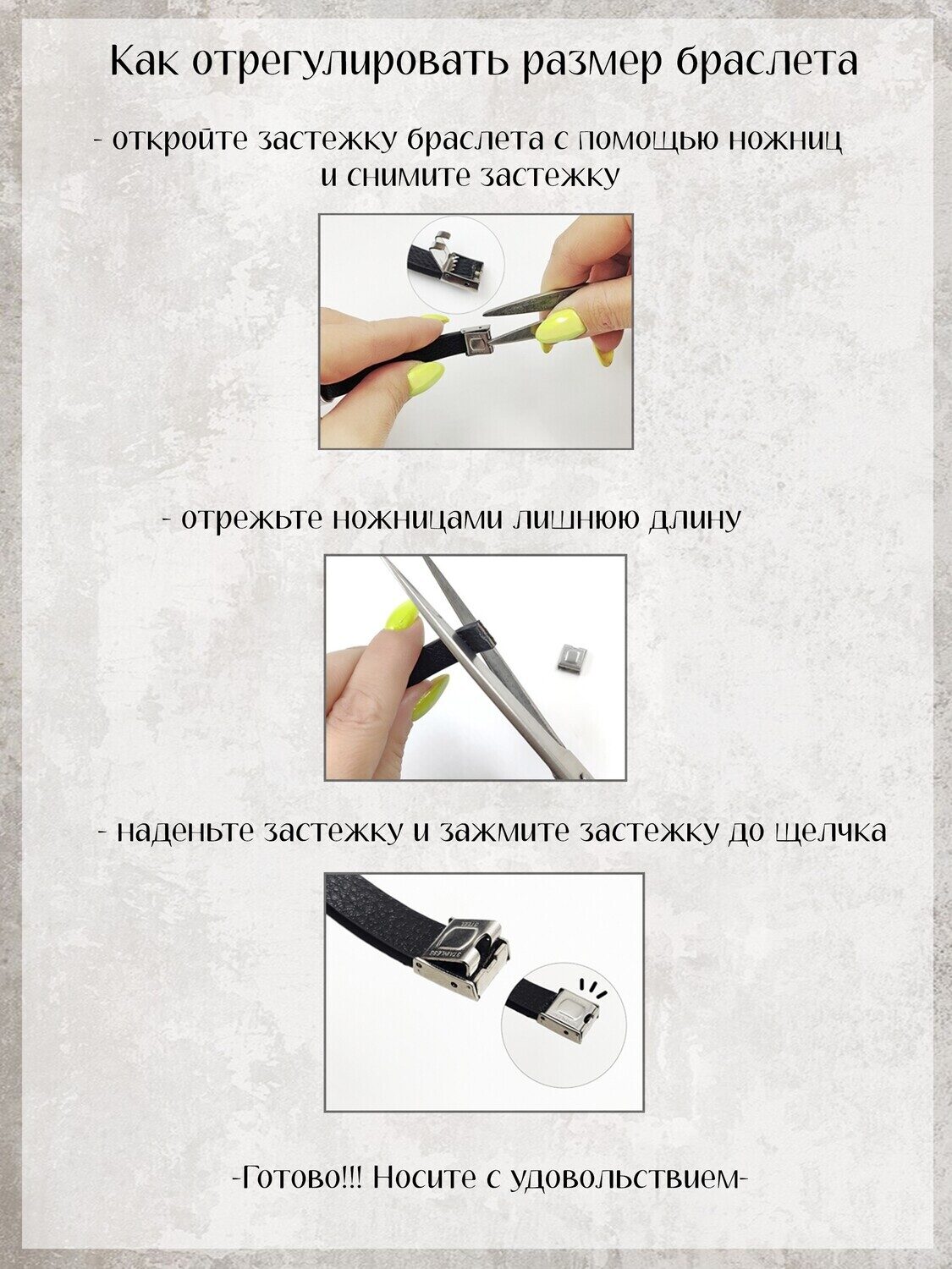 Силиконовые браслеты на руку Стандартная длина браслета 20 см. Длину можно регулировать Что бы отрегулировать браслет нужно: 1. Открыть замок застежки(он с зубчиками) 2. Отмерить нужную длину 3. Аккуратно отрезать. Наши прямые заказы на ювелирные фабрики позволяют установить для вас самые низкие цены в России на наши самые лучшие качественные украшения.