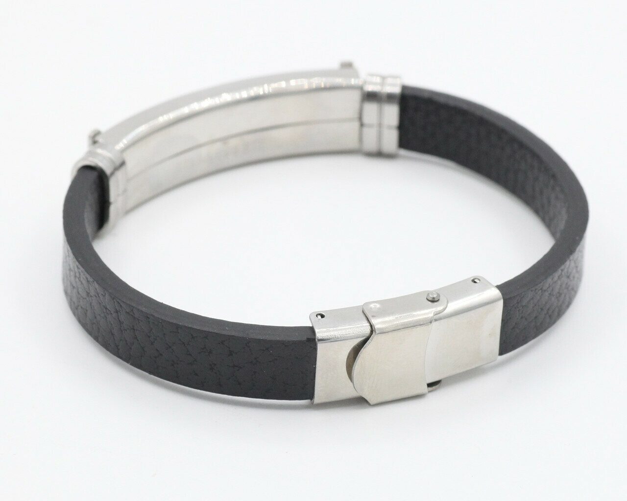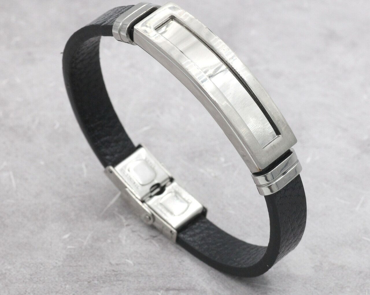 Стальной браслет из эко-кожи. Браслет подходит для гравировки. Стандартная длина браслета 20 см. Длину можно регулировать Что бы отрегулировать браслет нужно: 1. Открыть замок застежки(он с зубчиками) 2. Отмерить нужную длину 3. Аккуратно отрезать. Наши прямые заказы на ювелирные фабрики позволяют установить для вас самые низкие цены в России на наши самые лучшие качественные украшения.