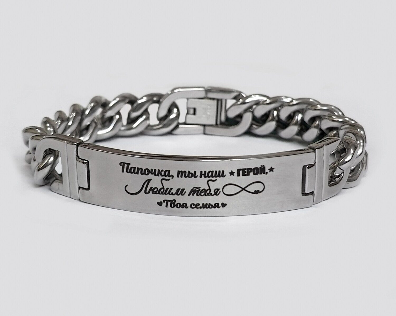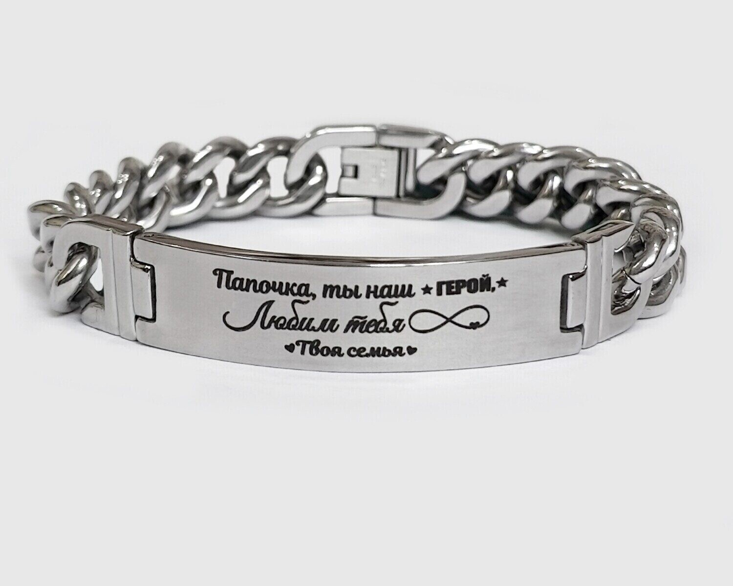 Браслет гравировкой Папочка, ты наш ГЕРОЙ
