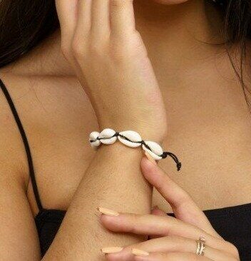 Описание Максимальная длина браслета 37, можно регулировать по размеру, размер ракушек: 1,7*1,2 см,. Материал: ткань, пластик. Вес: 7 гр.