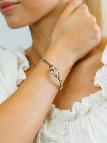 Стильный и лаконичный браслет-обруч — это аксессуар, который подойдёт как для повседневного образа, так и для особых случаев. Он выполнен из прочного гипоаллергенного ювелирного сплава, что обеспечивает его долговечность и устойчивость к повреждениям.