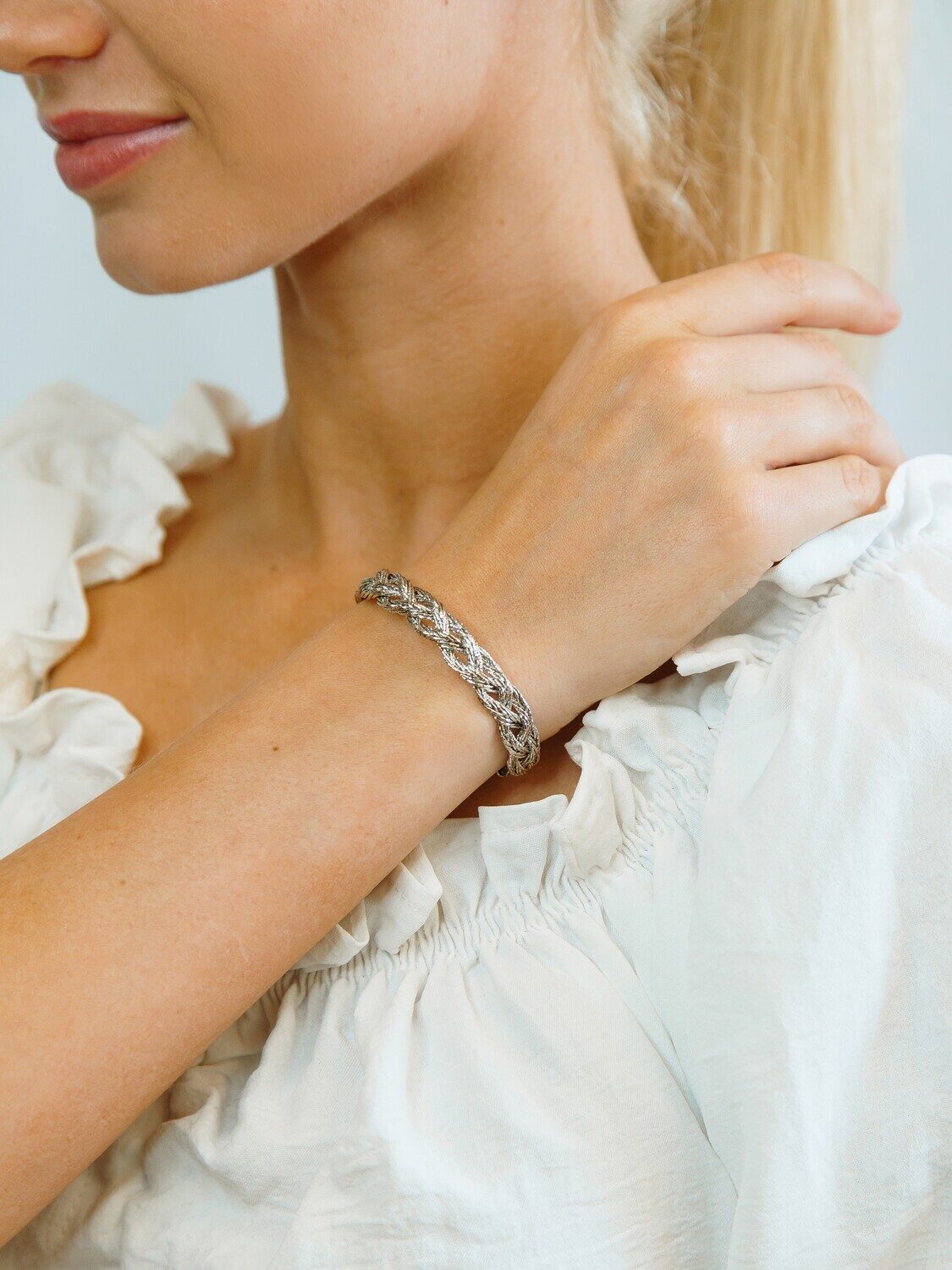 Браслет-обруч отличается элегантным дизайном и может стать прекрасным дополнением к любому вашему образу. Он идеально подойдёт тем, кто ценит минимализм и качество. Такой браслет может стать отличным подарком для близких или стильным элементом вашей коллекции ювелирных изделий.