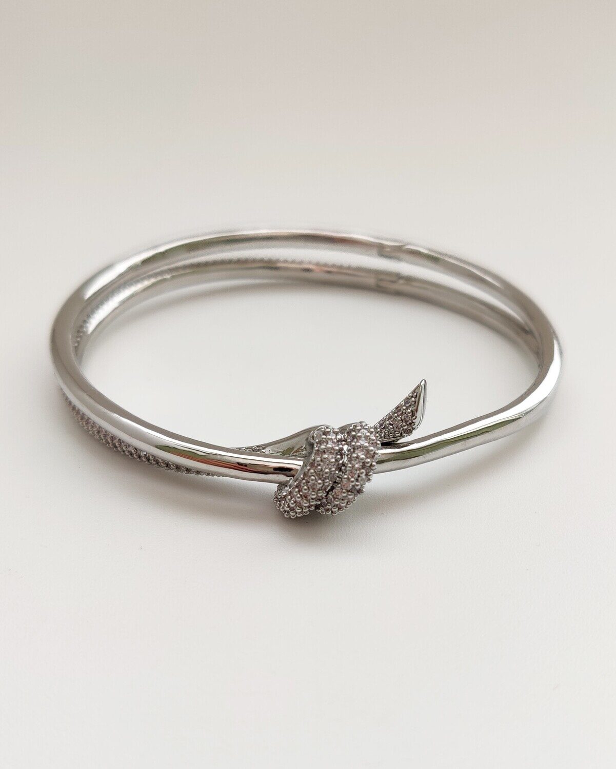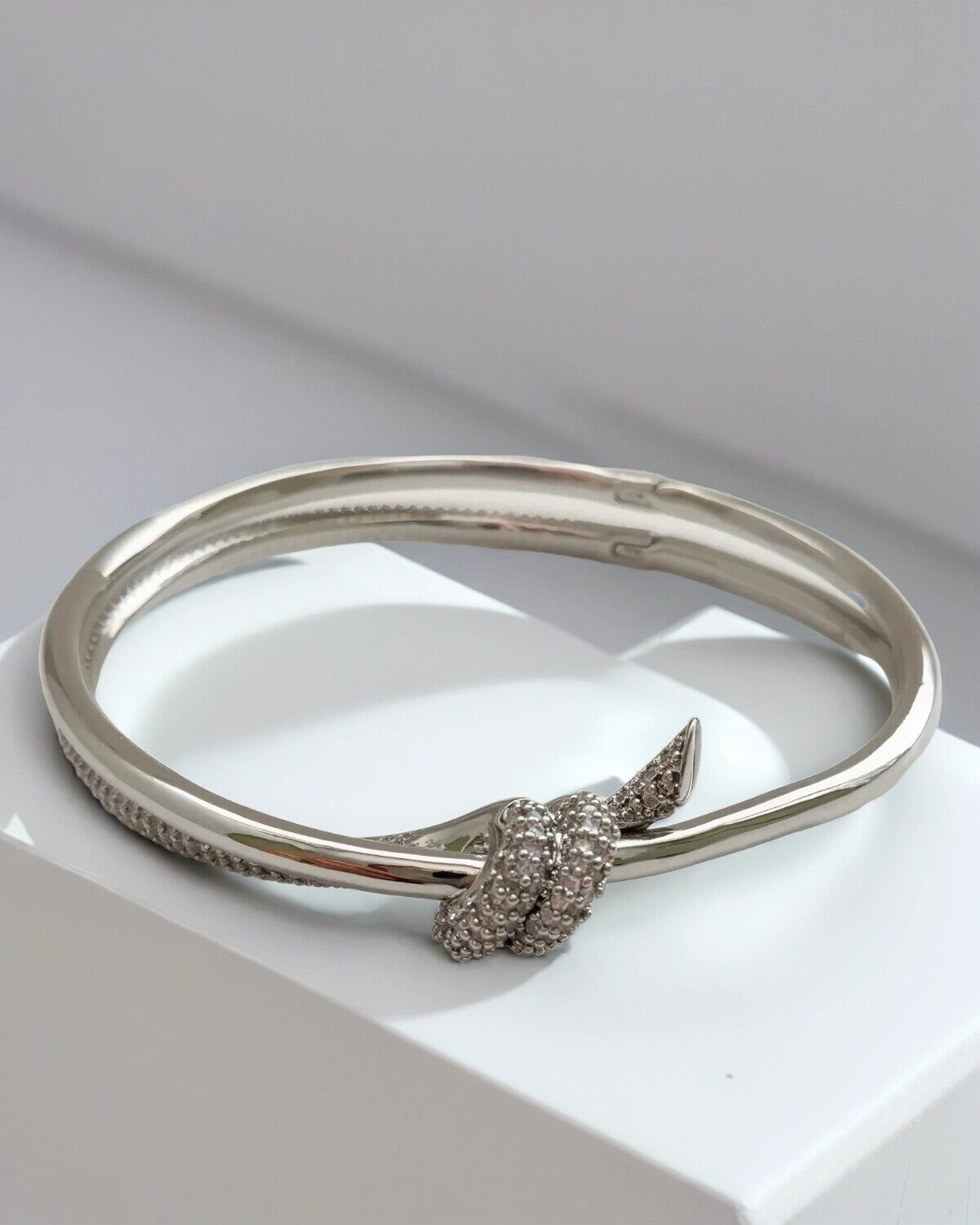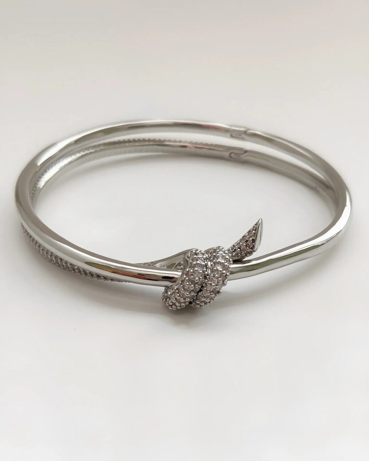 Стильный и лаконичный браслет-обруч — это аксессуар, который подойдёт как для повседневного образа, так и для особых случаев. Он выполнен из прочного гипоаллергенного ювелирного сплава, что обеспечивает его долговечность и устойчивость к повреждениям.